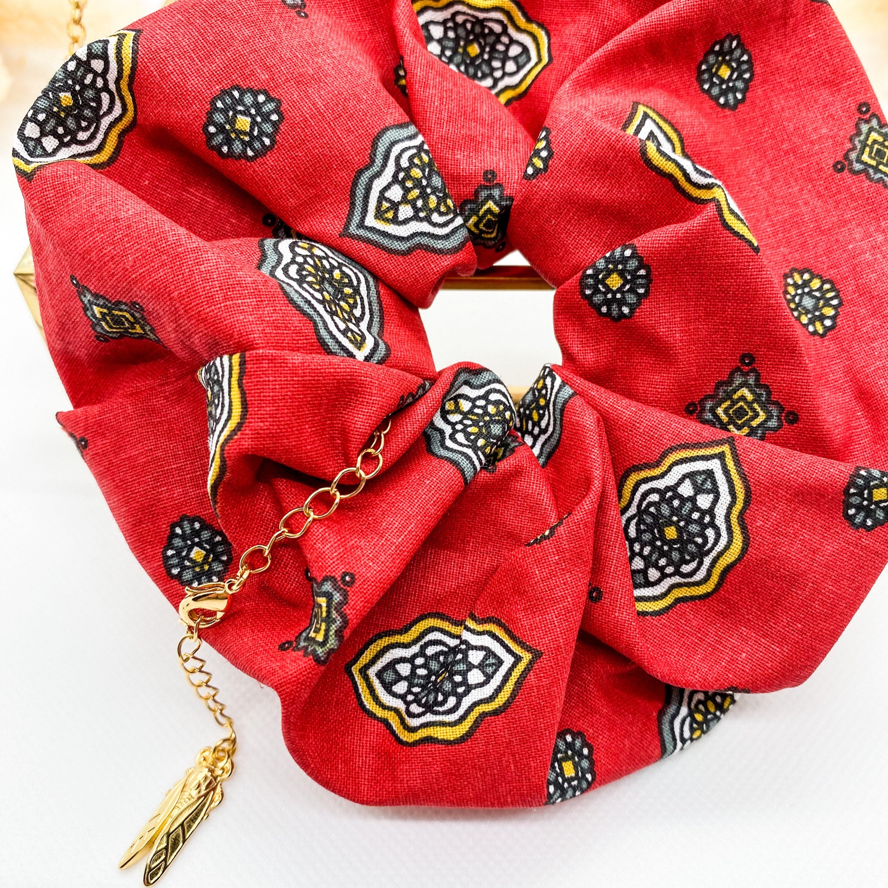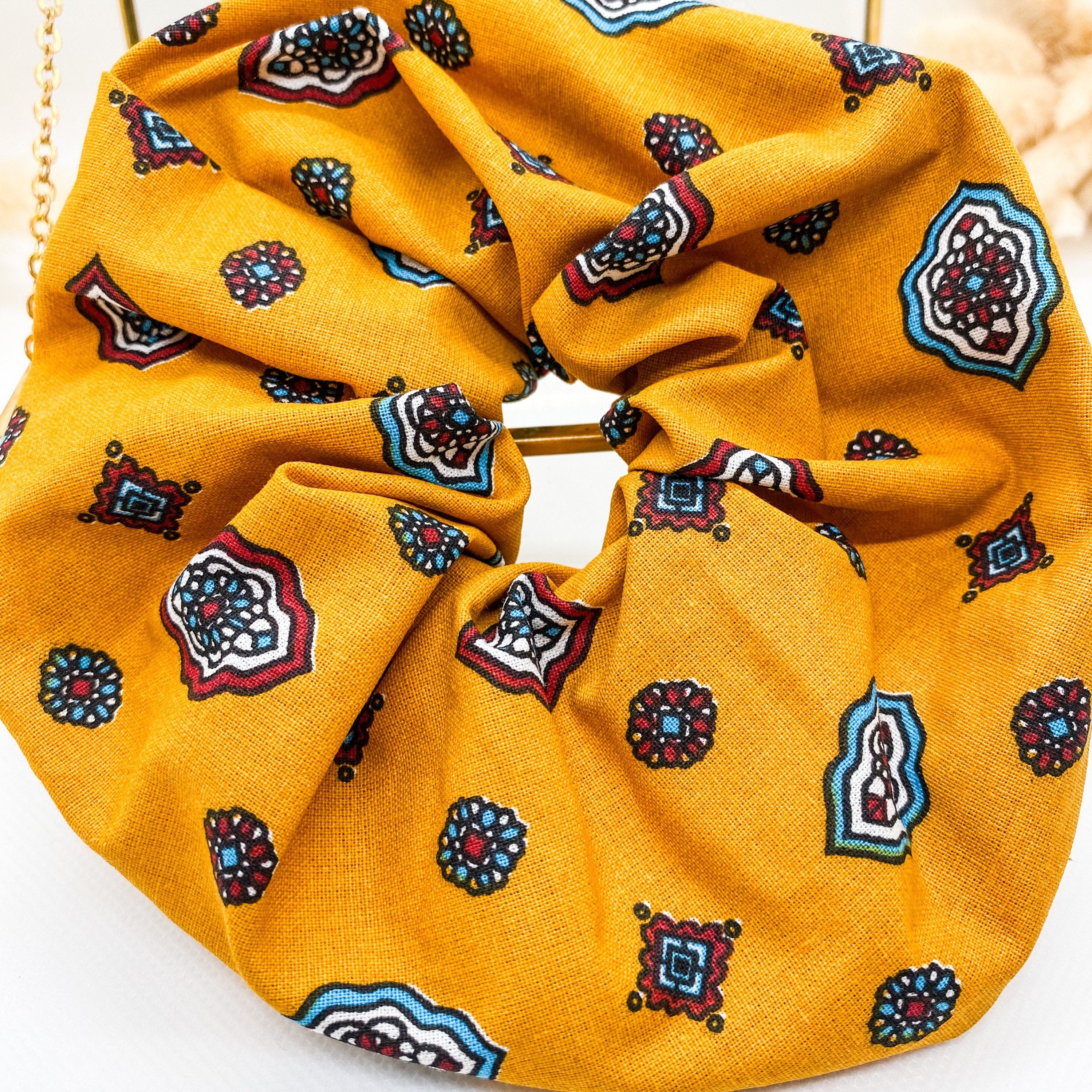 Chouchou Provençal chaînette Cigale : chouchou xxl, scrunchie, tissu provençal jaune, rouge, bleu choisissez votre couleur