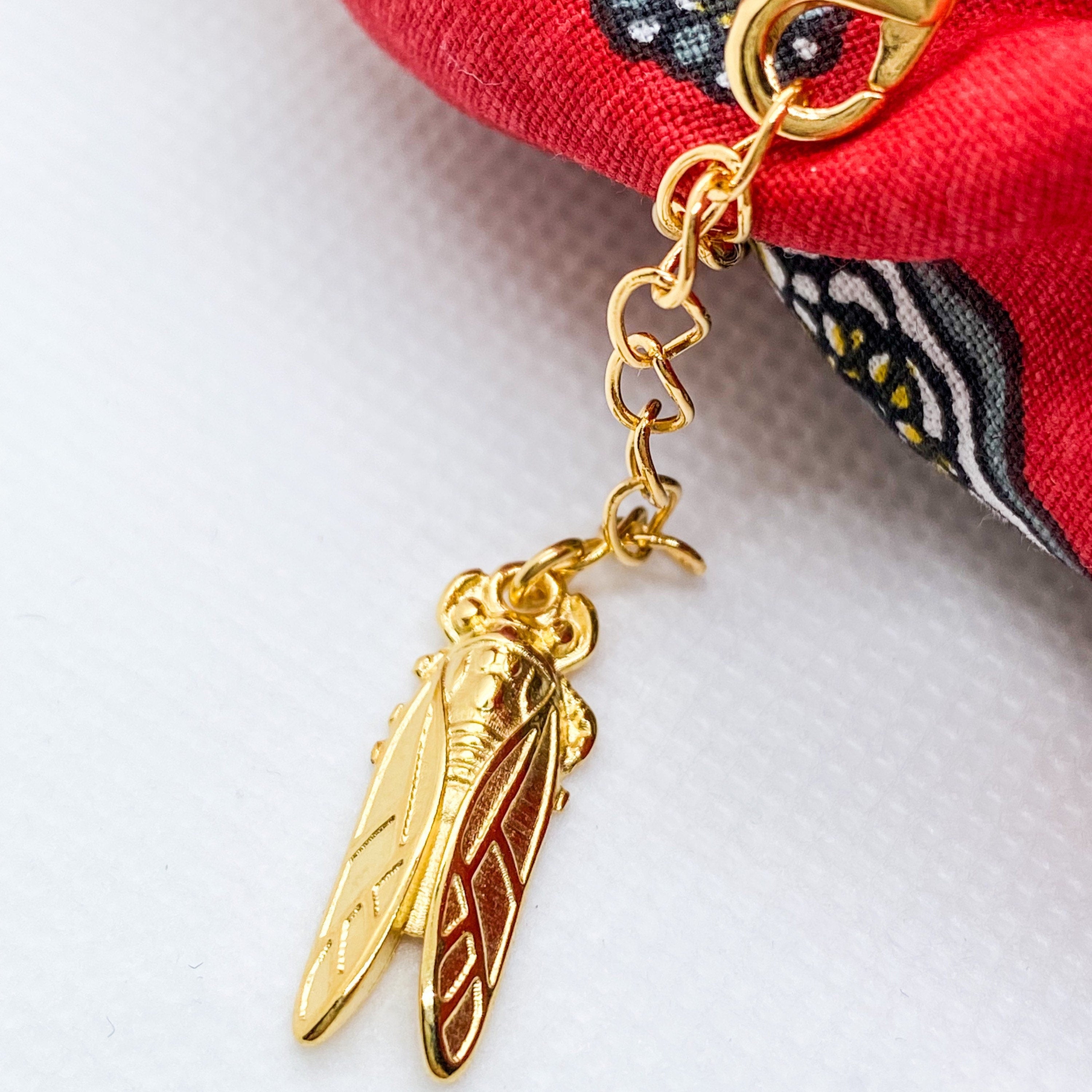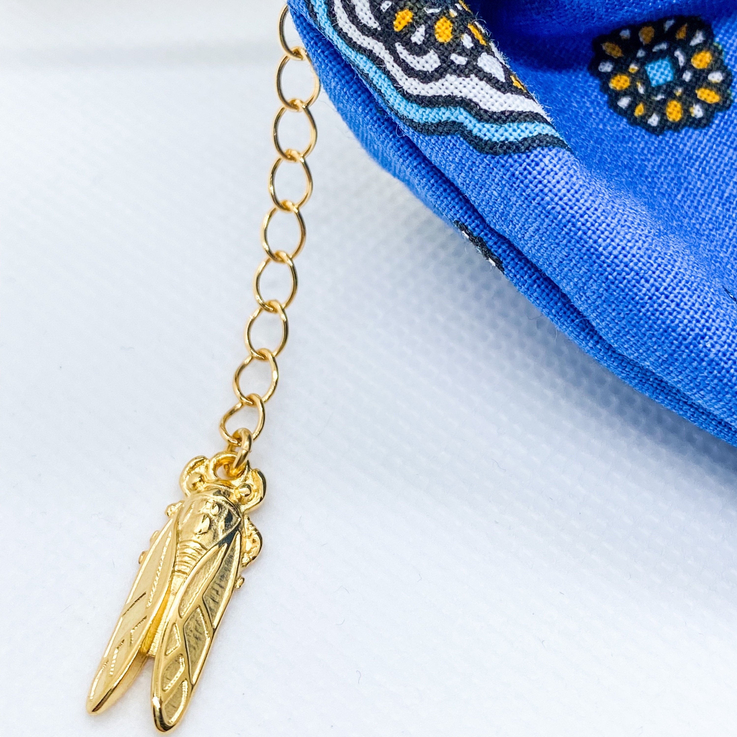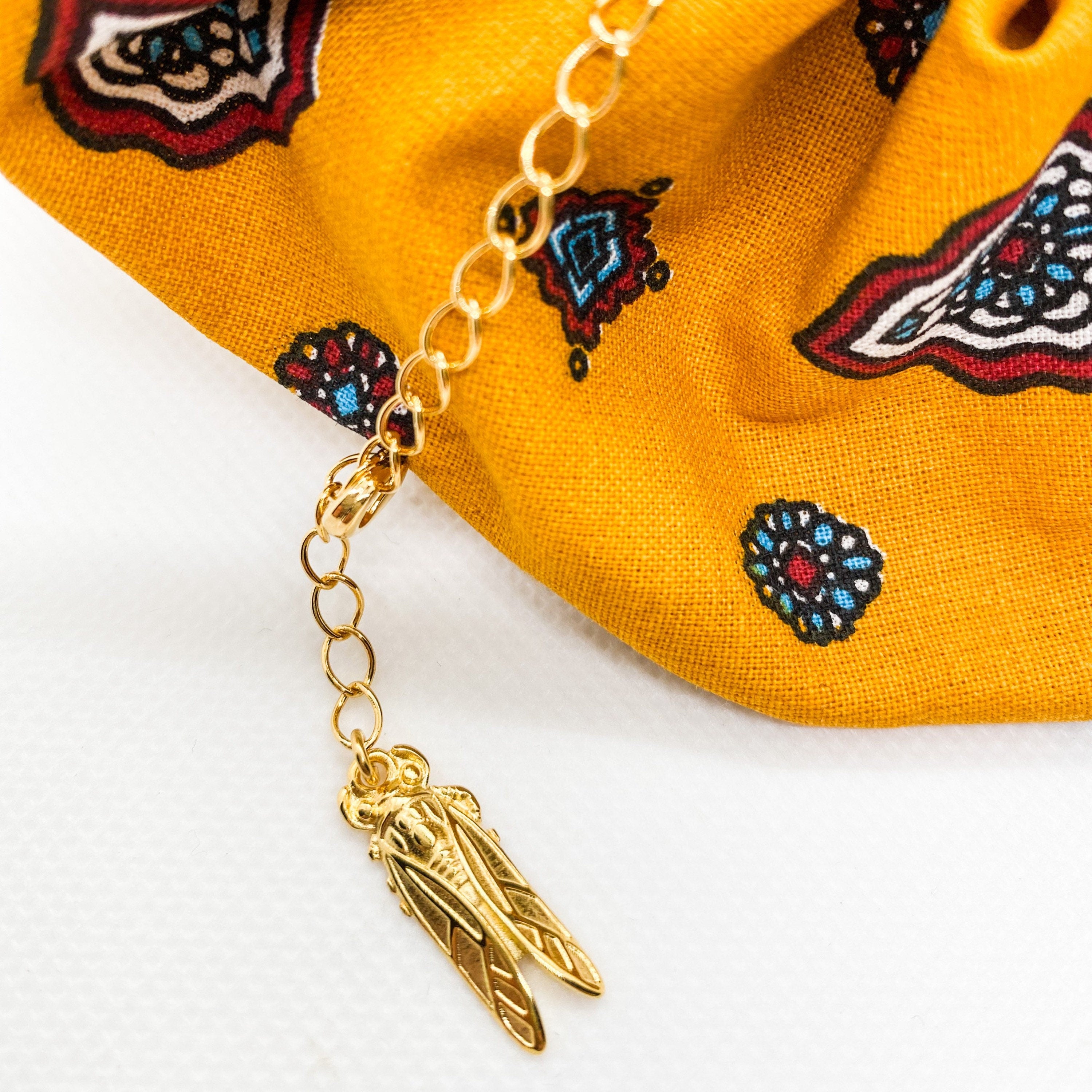 Accompagné ou non de sa chaînette cigale dorée à l’or fin 24K d’une longueur de 15 cm.