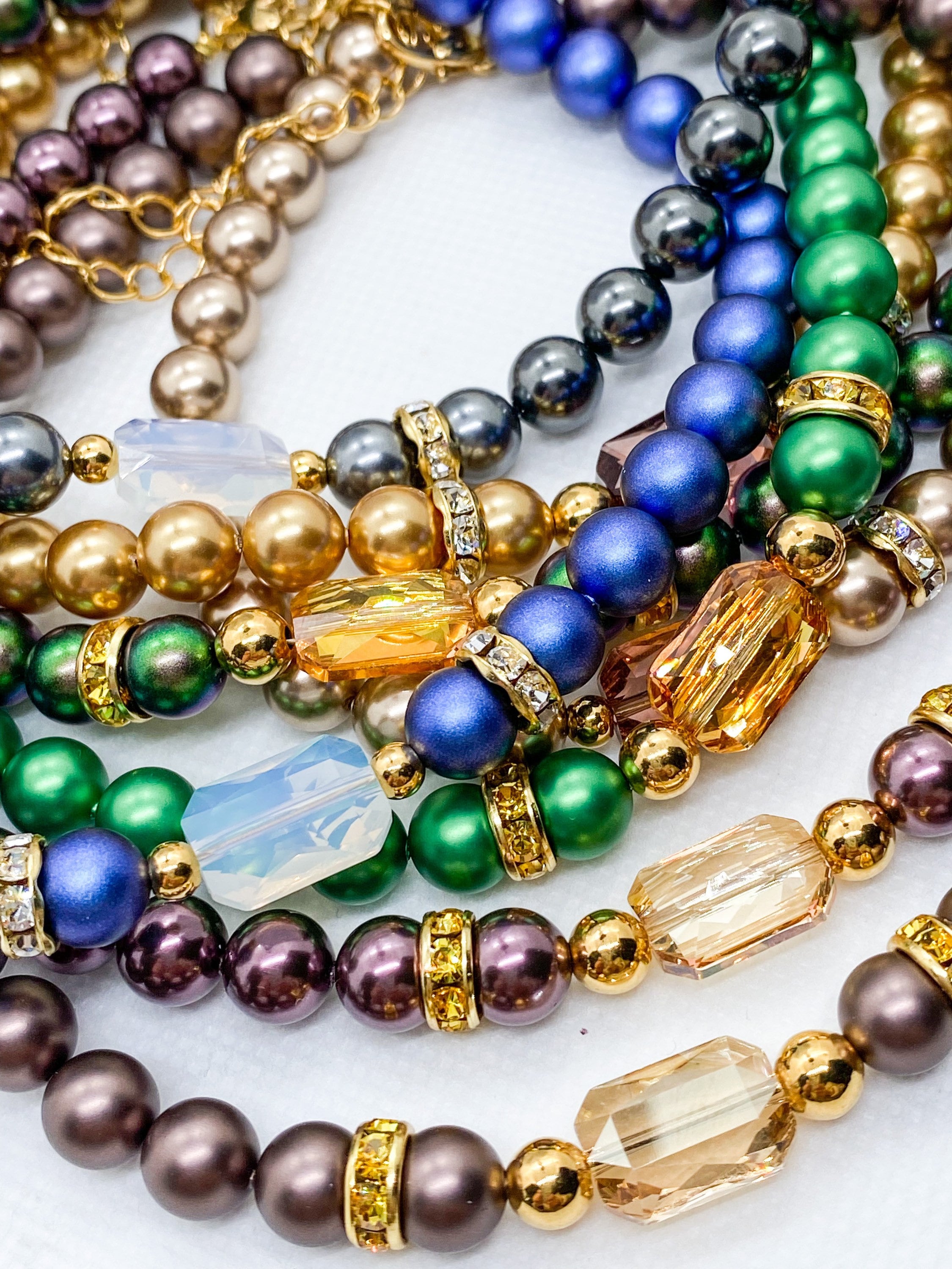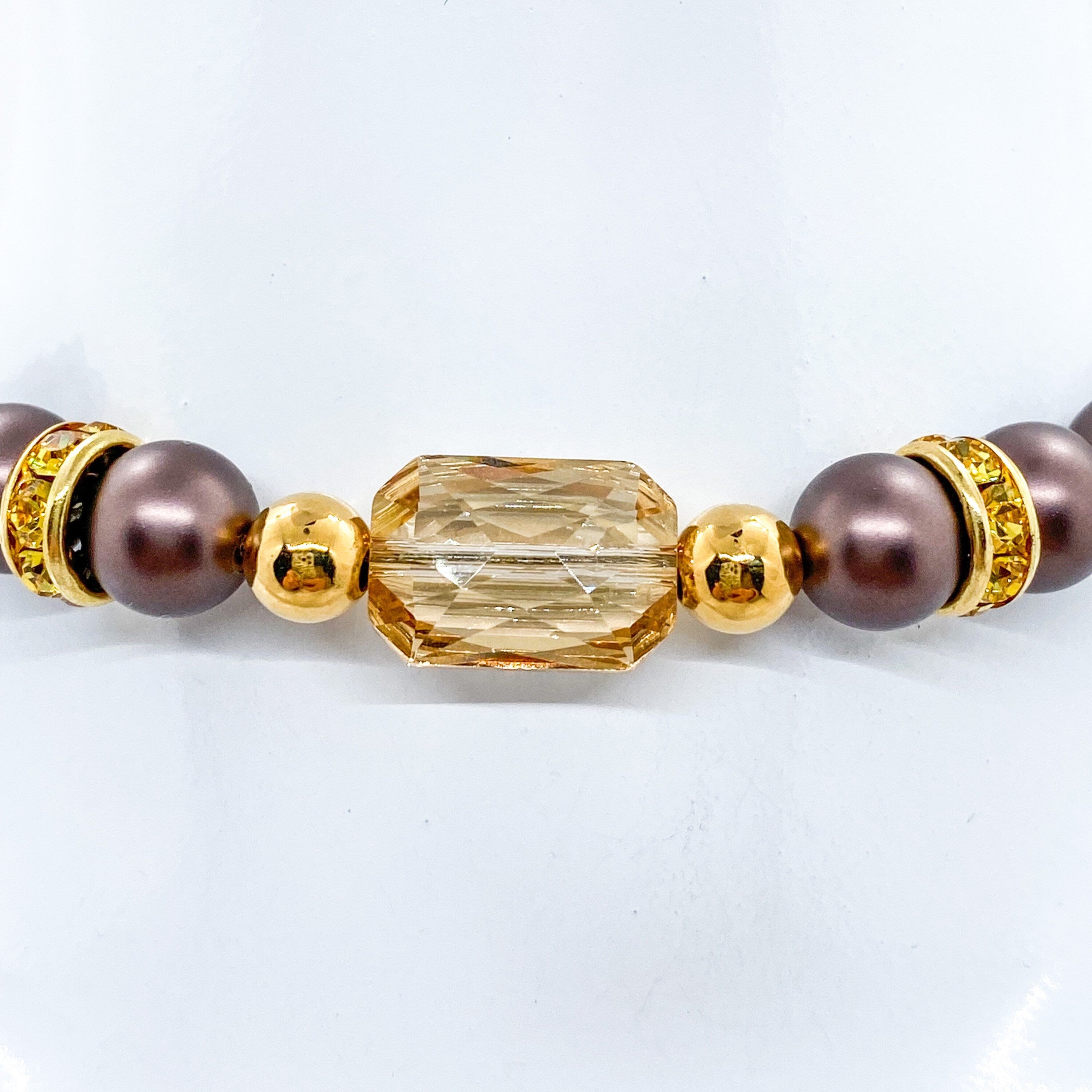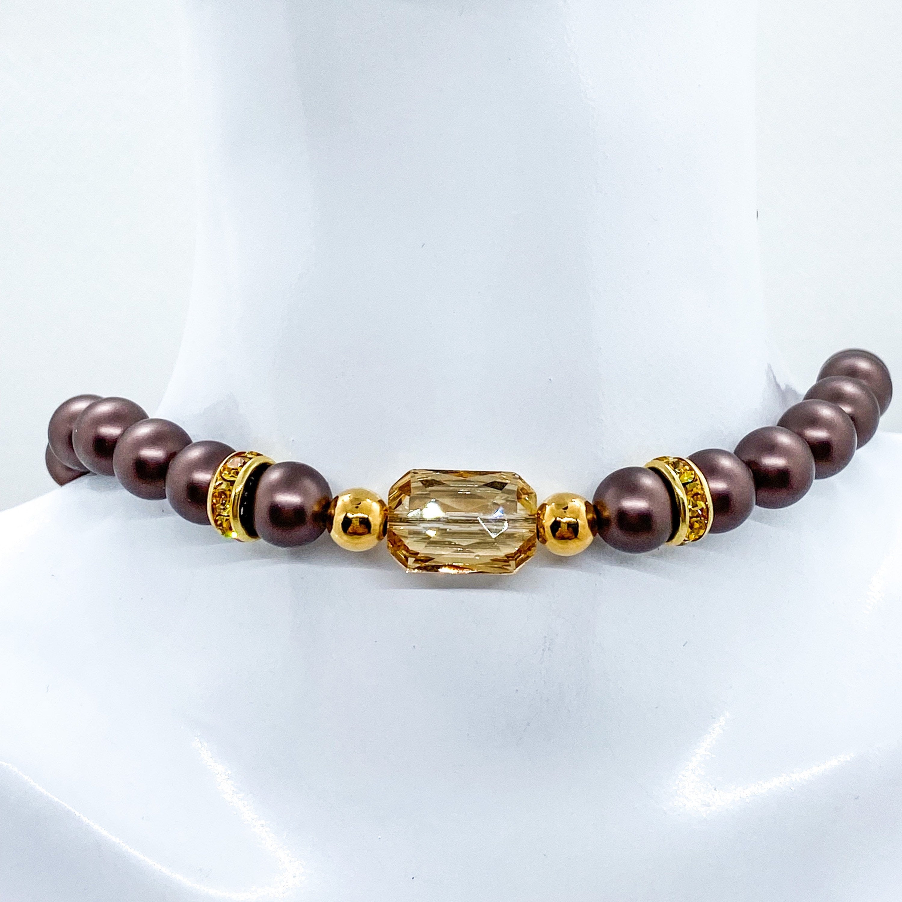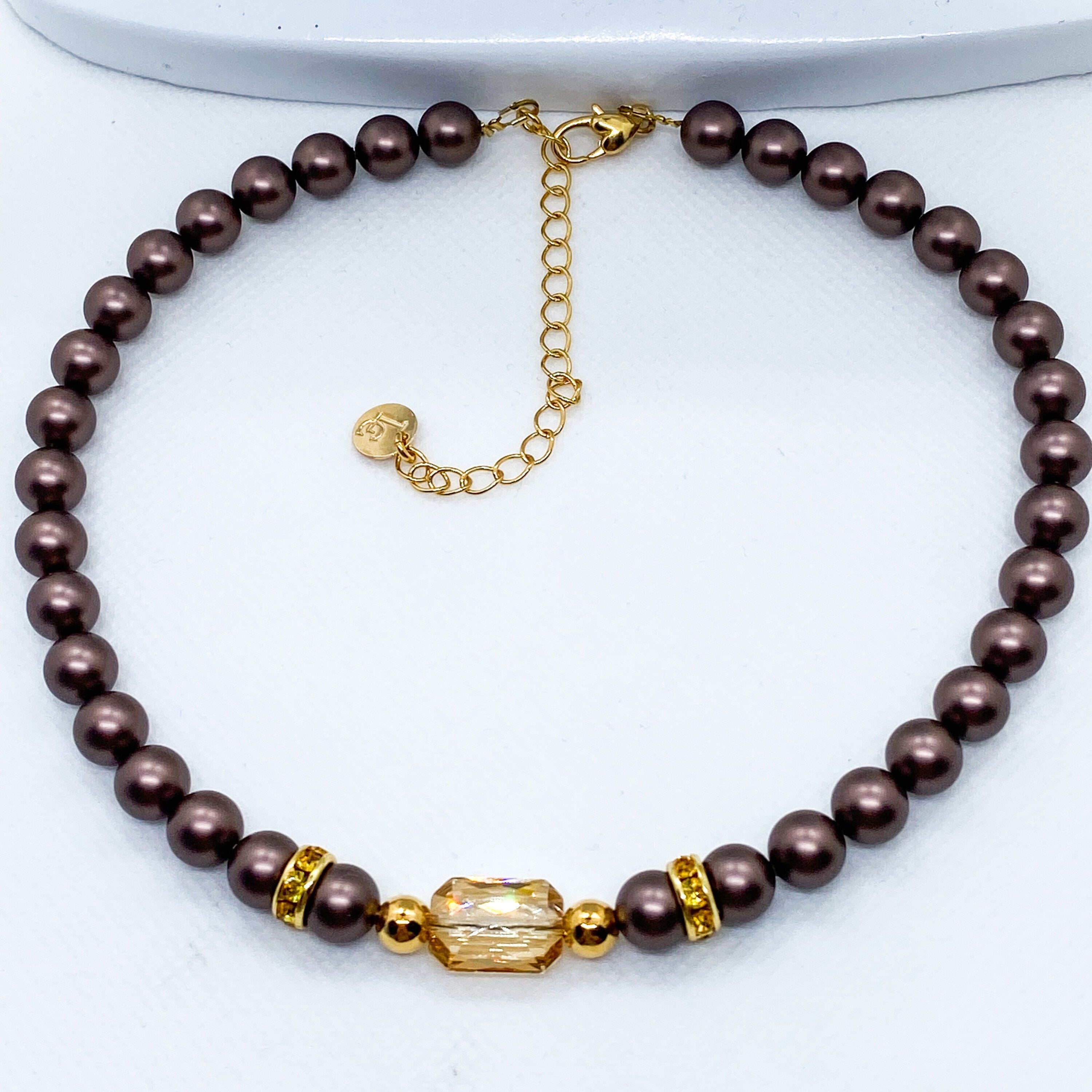 Collier Perles de Cristal L’Imperial Marron : collier choker ou ras de cou, perles de cristal Swarovski, perle centrale taille émeraude