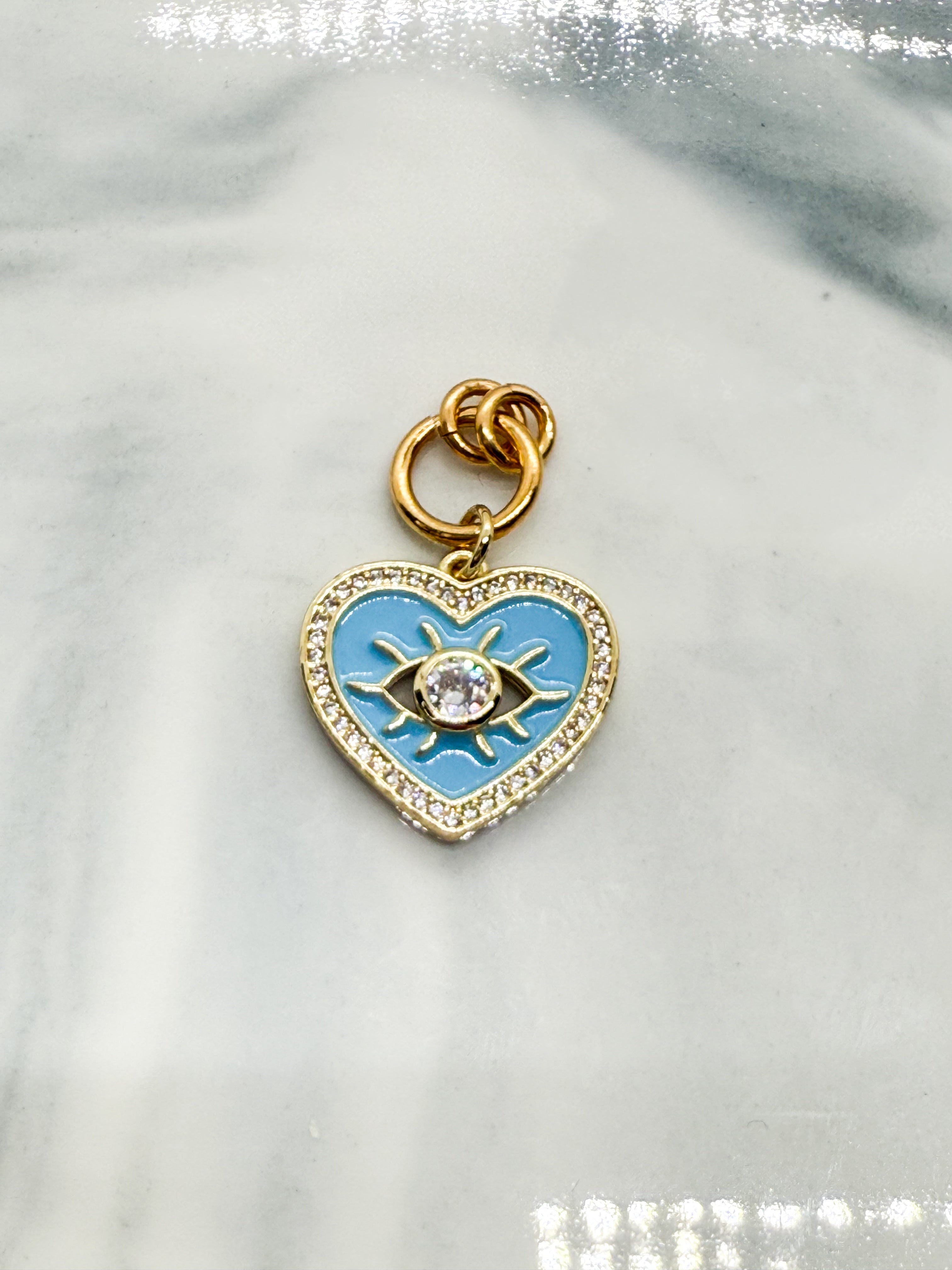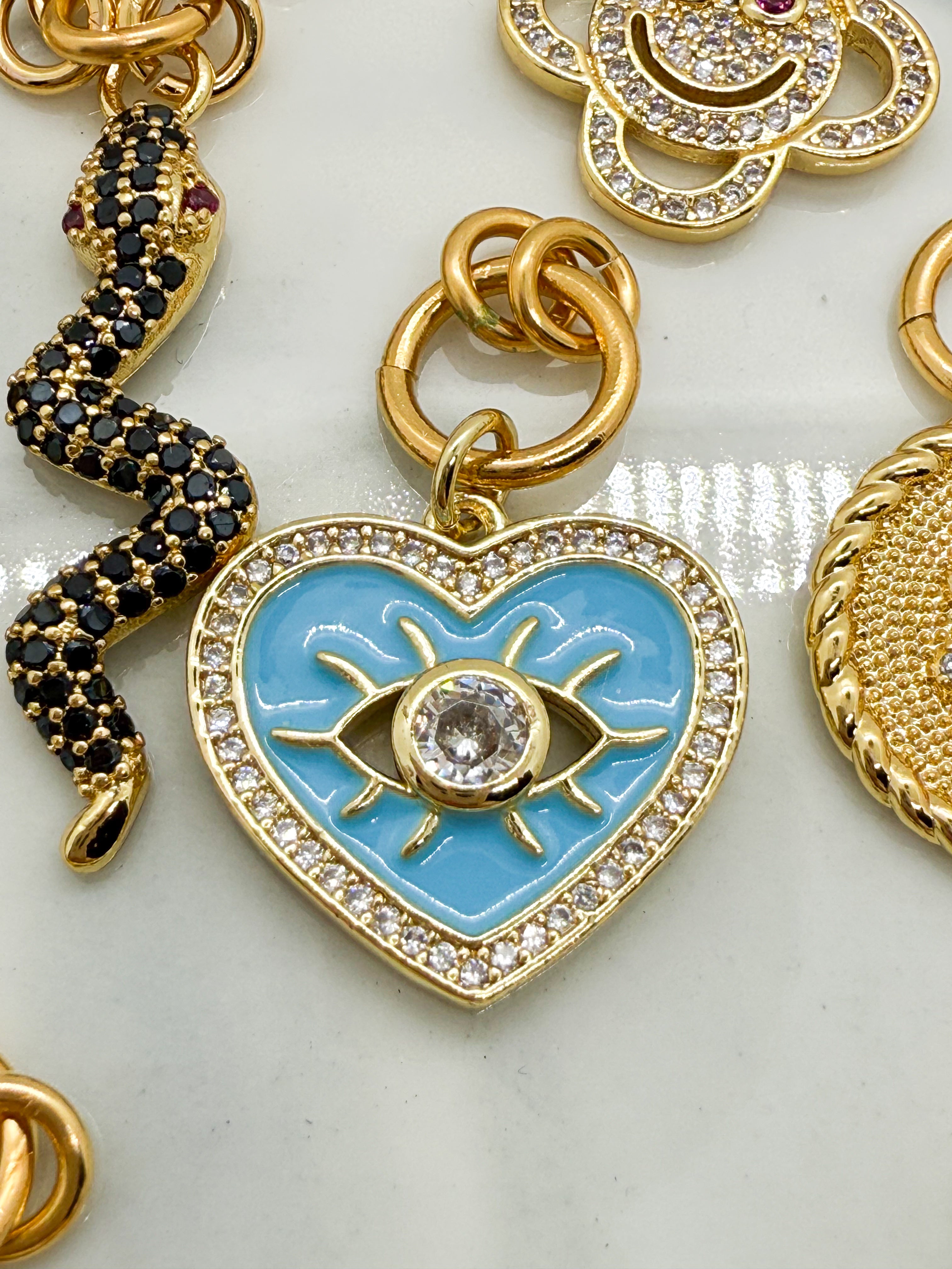 Charm en laiton doré, zircons cubiques et émail. Anneaux en laiton doré à l’or fin 24K 1 micron.