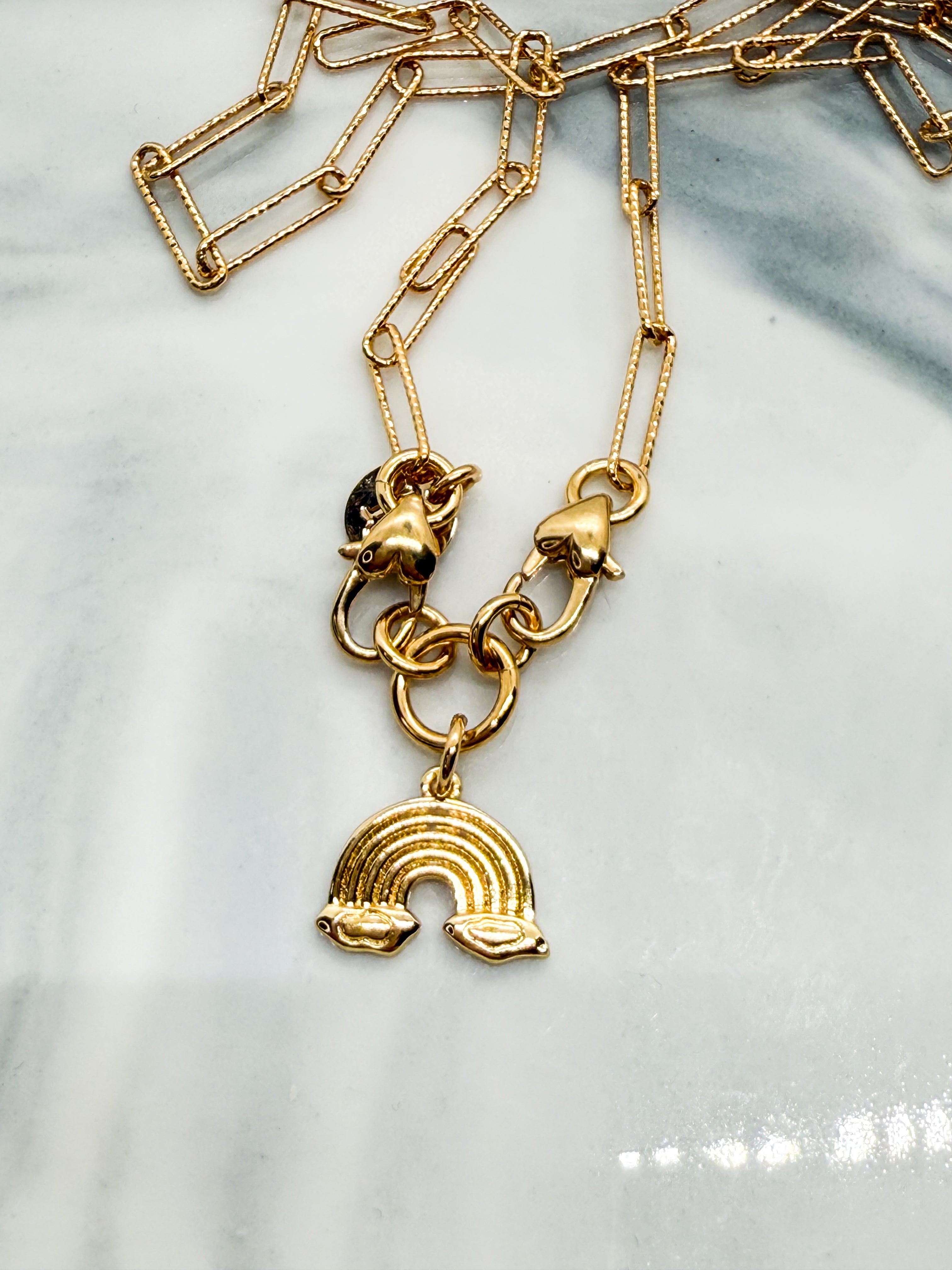 Charm en laiton doré et anneaux dorés à l’or fin 24K 1 micron.