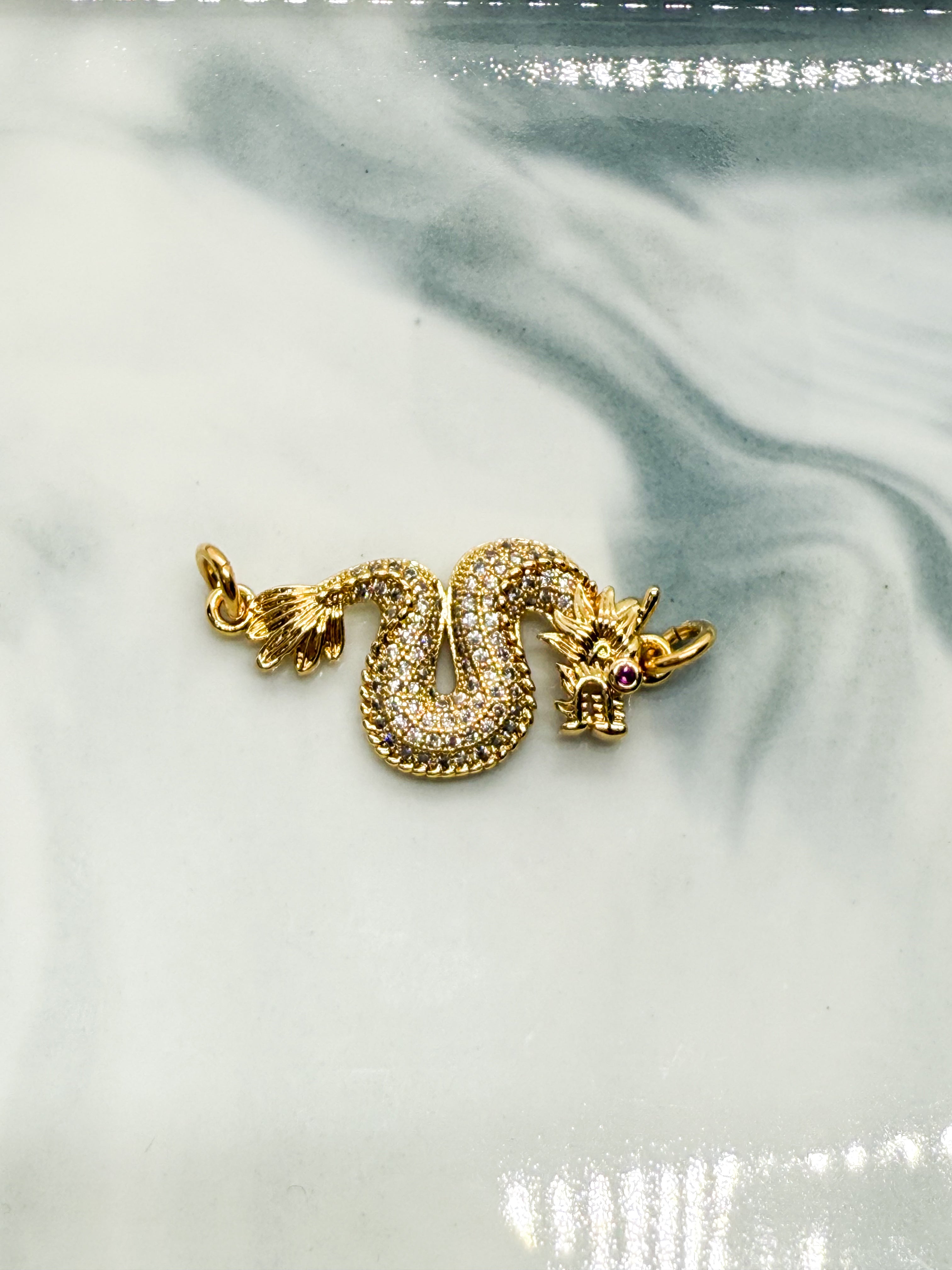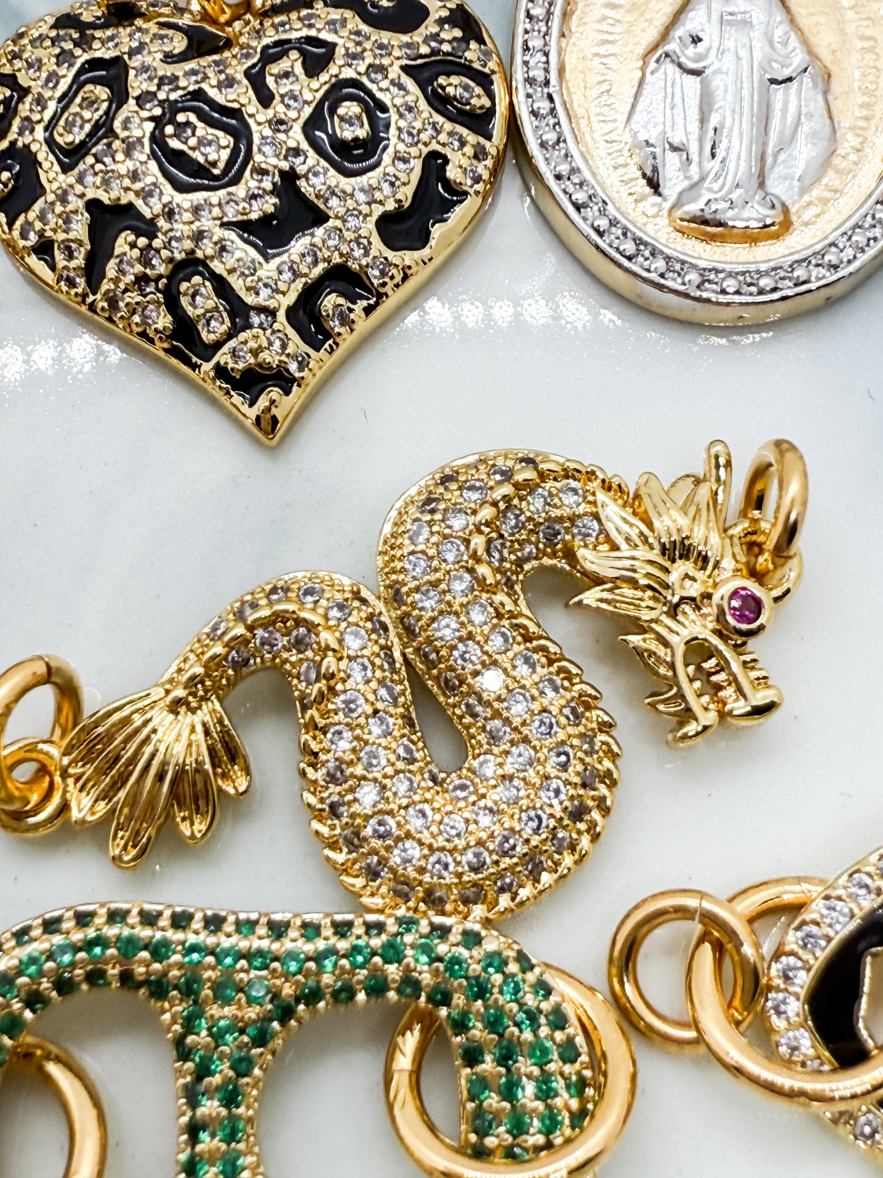 Charm en laiton doré et zircons cubiques. Anneaux en laiton doré à l’or fin 24k 1 micron.